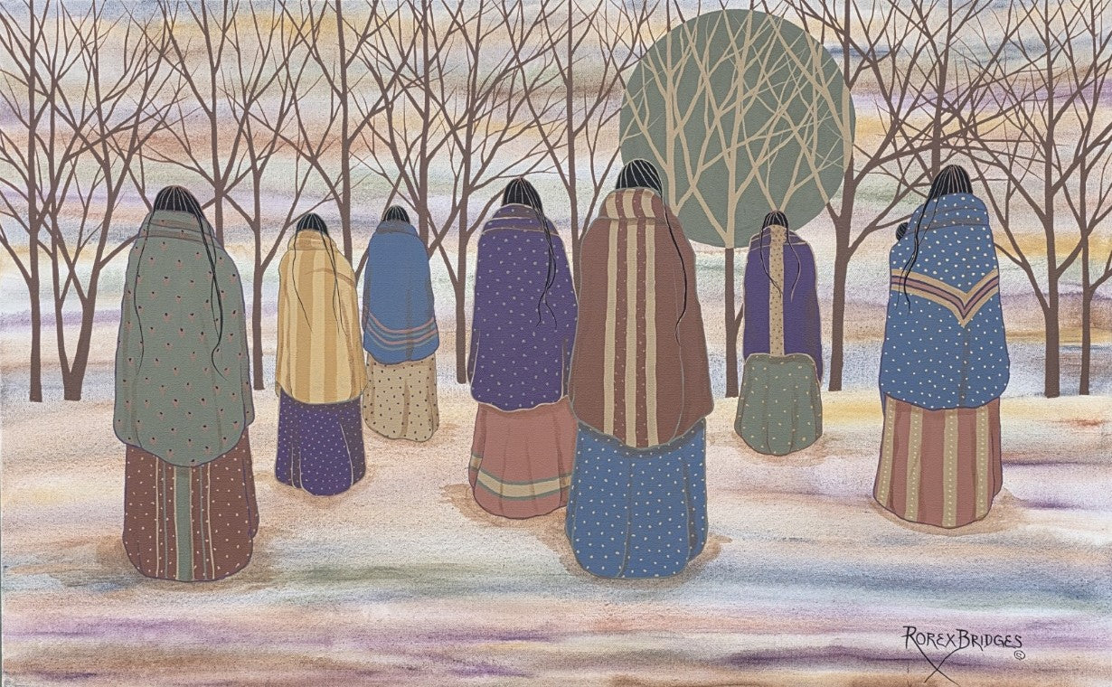 This 48" x 30" wrapped canvas original acrylic painting won the Spirit of Oklahoma award at the 2025 Five Civilized Tribes Museum Masters Art Show.